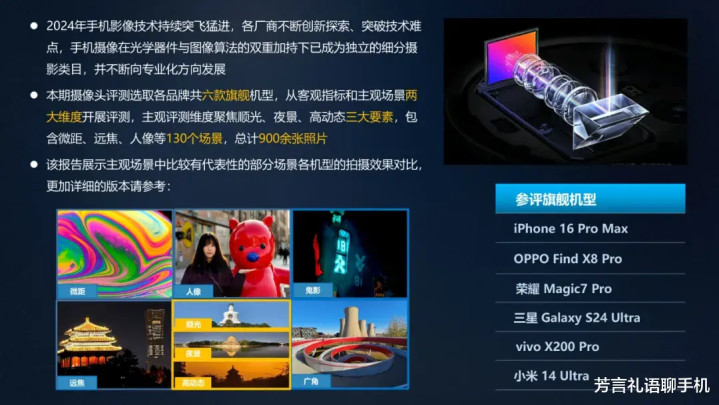 以下手机拍照评测报告供参考。主要从客观指标和主观场景两大维度开展评测,主观评测维度聚焦顺光、夜景、高动态三大要素,包含微距、远焦、人像等130个场景,总计900余张照片。